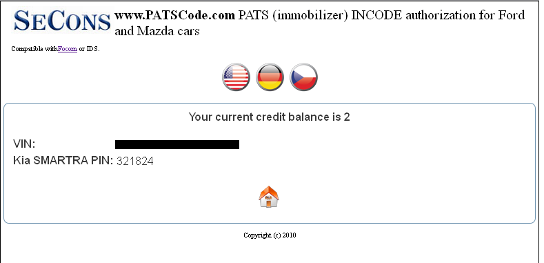 Il codice PIN del veicolo può essere ottenuto tramite il servizio www.PATSCode.com o tramite il concessionario Hyundai.