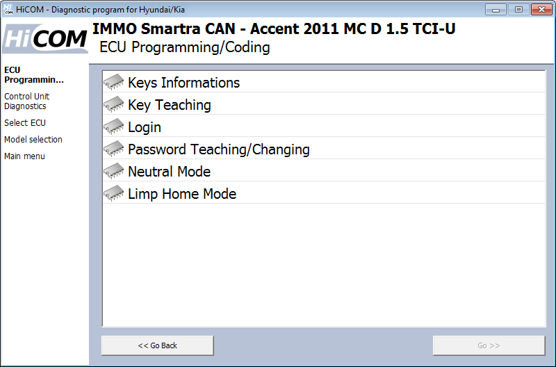 Questa funzione serve per utilizzare la ECU già utilizzata in un altro veicolo.